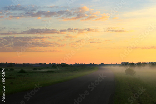 © Venera, Fototapeta premium fog in the field at sunrise