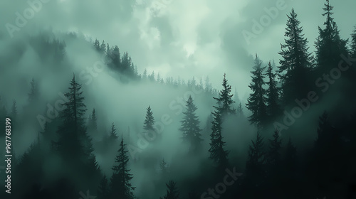 © Thiago, Obraz premium fog in the forest