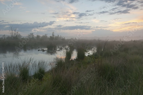 © Erhard Nerger/imageBROKER, Fototapeta premium Fog in the morning in the Moor, Emsland, Lower Saxony, Germany, Europe