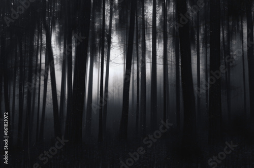 Fototapeta premium Fog in the woods with motion blur