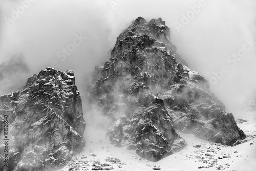 © Jaroslav Moravcik, Obraz premium Fog in top of the rocky peaks