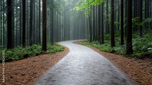 © siraphol, Fototapeta premium fog laden path winding through dark, eerie forest creates mysterious atmosphere