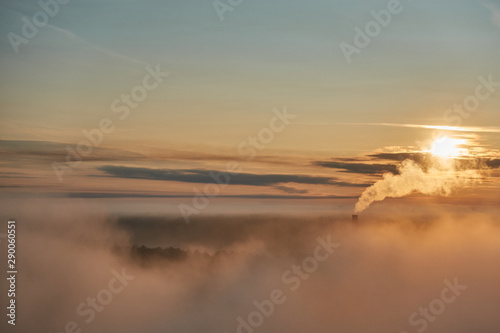 © Vitalii Makarov, Obraz premium Fog over the city with the rising sun