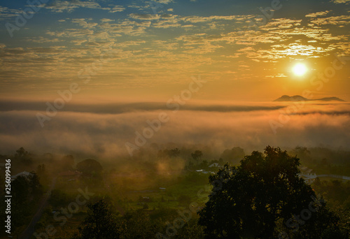 © Bigc Studio, Fototapeta premium Fog sunrise over winter beautiful morning with misty cover