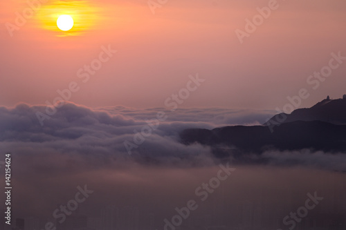 © joeycheung, Obraz premium Foggy and Cloudy view of Victoria harbor at Hong Kong