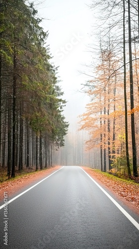 © jumino, Obraz premium Foggy Autumn Forest Road