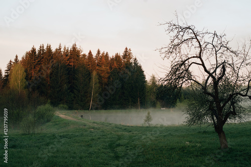 © Hanna, Fototapeta premium foggy autumn morning in the village