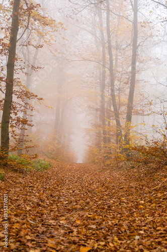 Obraz premium Foggy Autumnal Forest Trail