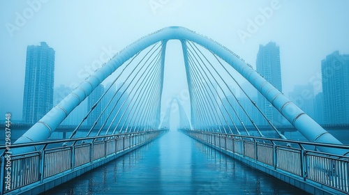 © Dece Std, Obraz premium Foggy city bridge walkway at dawn