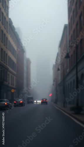 © KWY, Fototapeta premium foggy city street with cars driving down it
