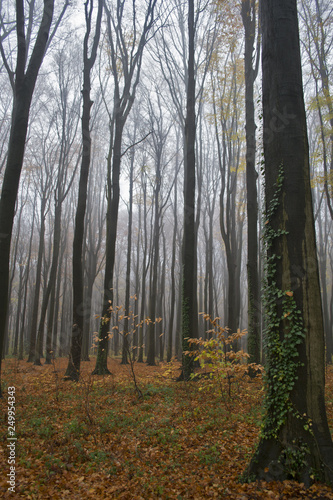© Tatiana, Obraz premium Foggy colorful autumn in Belgian forest, Tervuren