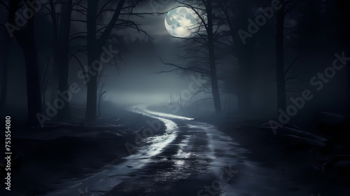 Fototapeta premium Foggy dark forest path scary melancholy background