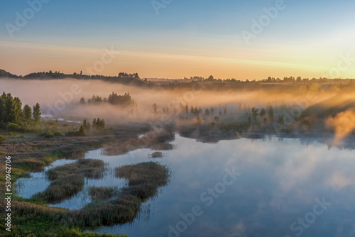 © Viktor, Fototapeta premium Foggy dawn in Izborsko-Malskaya Valley, Pskov region