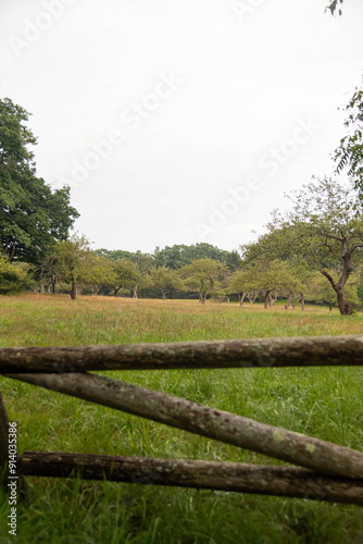 © Mackenzie, Fototapeta premium Foggy day in apple orchard, no people