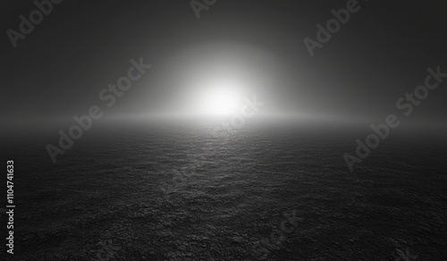 Obraz premium Foggy Desolate Landscape with Glowing Light Source Textured Background Rough Grunge Abstract Studio Space