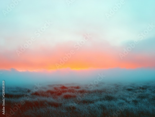 © Ishika, Fototapeta premium Foggy field at Sunrise.