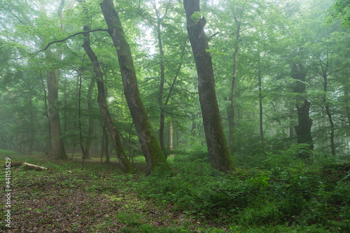 © alexionutcoman, Naklejka premium Foggy forest, at sunrise