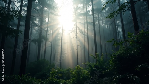 Naklejka premium Foggy Forest Awakening - Bright Day