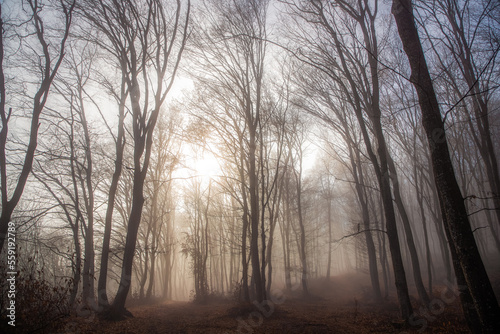 © Melinda Nagy, Fototapeta premium foggy forest in late autumn
