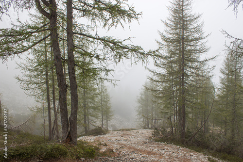 © Miroslawa Drozdowski, Fototapeta premium foggy forest in Lienz Dolomites in Austria