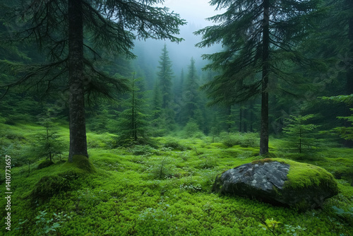 © Evgeny, Fototapeta premium Foggy forest in the mountains