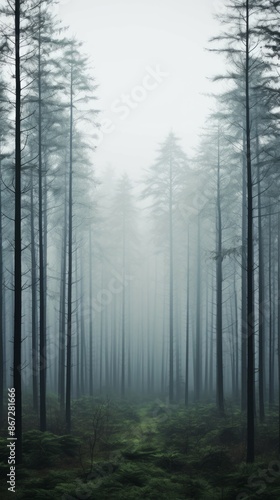 © Sidewaypics, Fototapeta premium Foggy Forest Material Structure Background - Generative AI