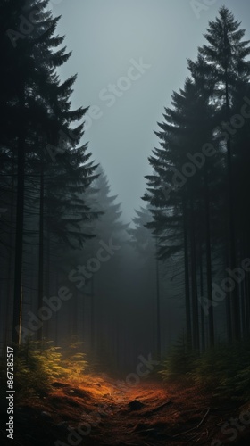 © Sidewaypics, Obraz premium Foggy Forest Material Structure Background - Generative AI