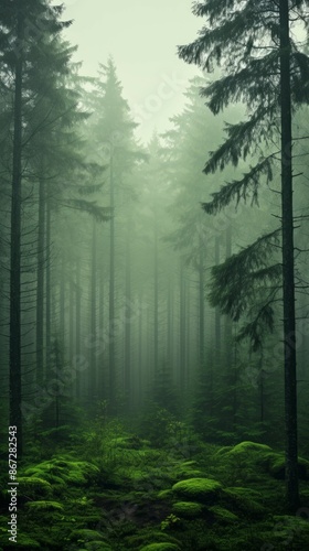 © Sidewaypics, Obraz premium Foggy Forest Material Structure Background - Generative AI