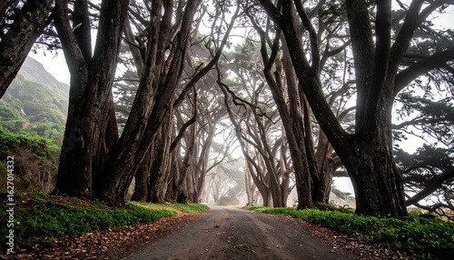 © Nir, Obraz premium Foggy forest pathway