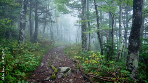Obraz premium Foggy forest trail amidst the trees