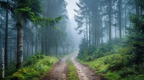 © Daniel, Obraz premium Foggy Forest Trees Nature