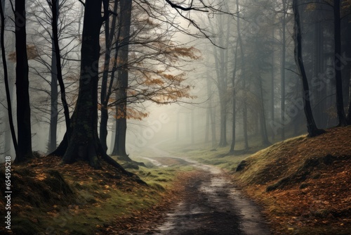 Obraz premium foggy forest with picturesque trees