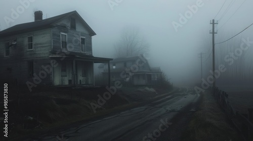 © Imsuniyah, Obraz premium Foggy Houses