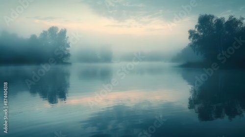 Fototapeta premium Foggy lake in the morning.