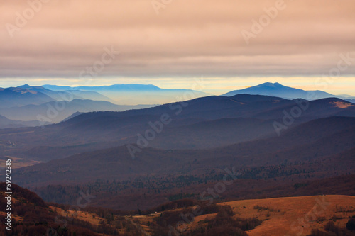 Fototapeta premium foggy landscape in Bieszczady Mountains, Poland, Europe