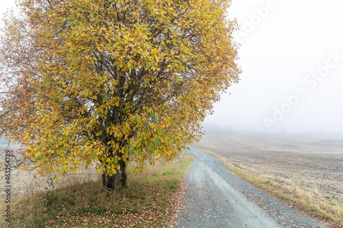 Fototapeta premium Foggy landscape with dirt road