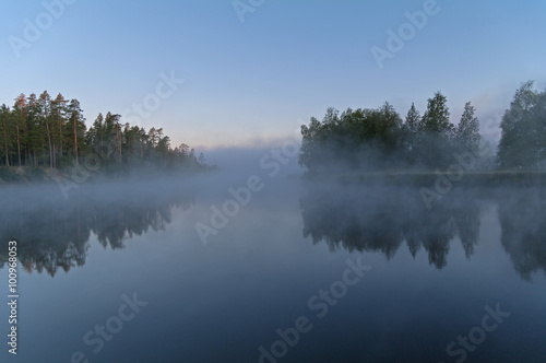 © Sergey Rybin, Fototapeta premium Foggy morning on the river.