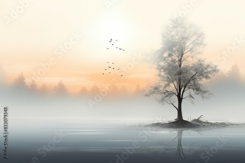 © Sidewaypics, Obraz premium Foggy mornings - Generative AI