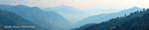 © AiGallery, Fototapeta premium Foggy mountain landscape with low hanging clouds, landscape, cloudy