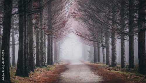 © Stefan Schurr, Obraz premium Foggy Path Between Trees