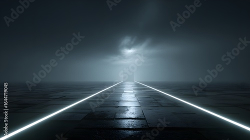 © rehan, Fototapeta premium Foggy path illuminated by a glowing line.