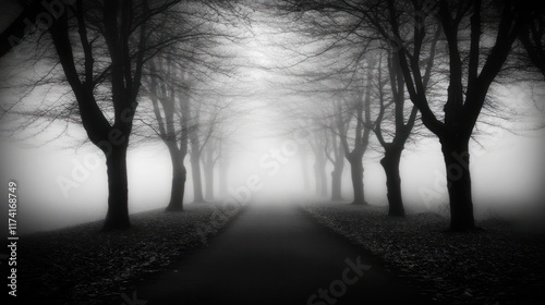 © LyceeChee, Fototapeta premium Foggy Path Through Bare Winter Trees
