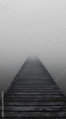 © Jaya, Fototapeta premium Foggy Pier, Lake, Monochrome Path