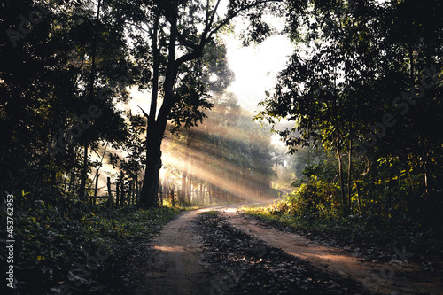 © artrachen, Fototapeta premium foggy road in rural village in the morning