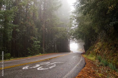 © William McDaniels, Fototapeta premium foggy road in the redwoods