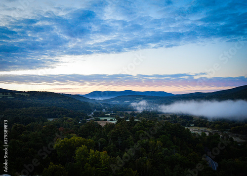 Fototapeta premium foggy sunrise over the mountains Quarry Hill, Pownal VT 9.20.20