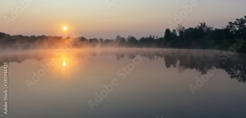© Андрей Золотницын, Fototapeta premium foggy sunrise over the river