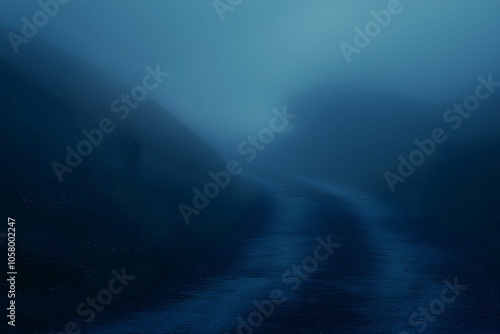 Fototapeta premium Foggy twilight road winding through hills on a gloomy evening