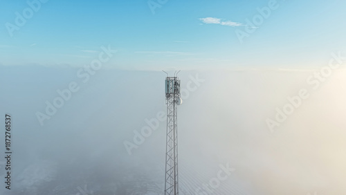 Fototapeta premium Foggy view of a tall mobile phone mast