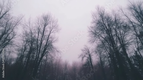 Fototapeta premium Foggy Winter Forest Landscape Under a Pale Sky